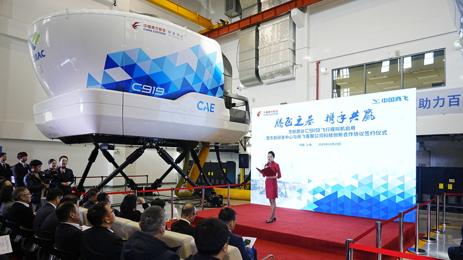 东航此次接收的飞行模拟机,是目前C919机型最先进的全动飞行模拟机,具有卓越的视觉逼真度、强劲的虚拟计算能力,可实现高仿真度、多种类科目的飞行训练,营造几近真实的模拟飞行效果。模拟机投入使用后,有效填补了航空公司在C919机型训练装备领域的空白,将为东航飞行训练体系的全面升级提供关键支撑,也将进一步筑牢国产大飞机商业运营的“安全基石”。东航将总结反馈模拟机实际运行情况,形成“运营-训练-研发”的良性循环,为C919机型的持续改进、迭代升级贡献力量。