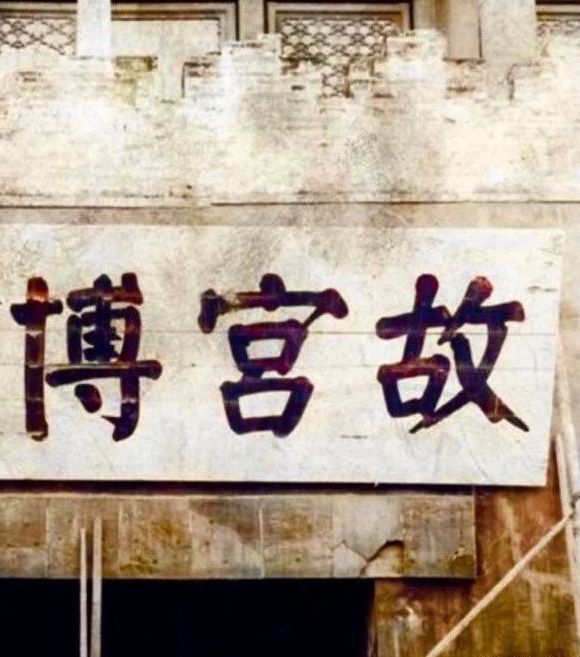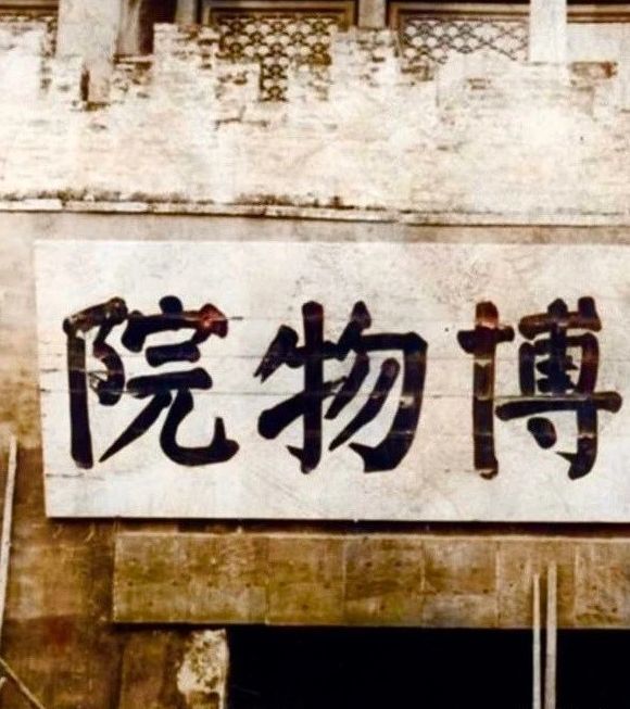 下面是后来又换上的郭沫若所题写的“故宫博物院”