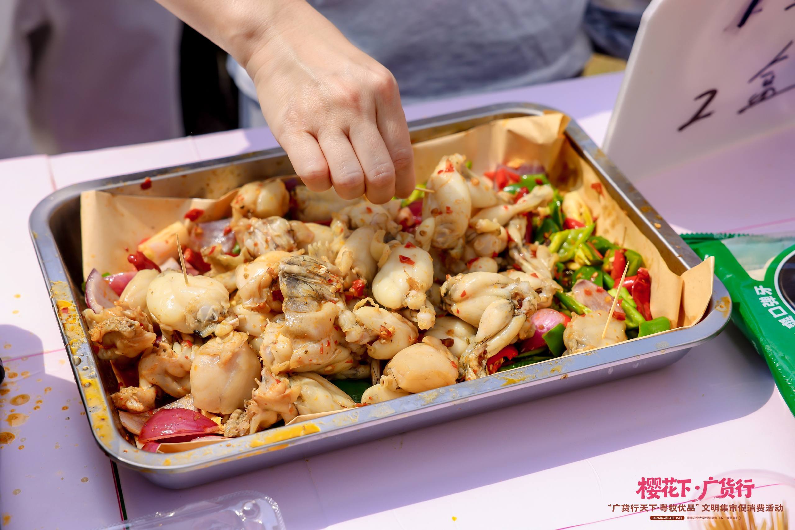 3月14-15日,“广货行天下·粤牧优品”文明集市促消费活动在华南农业大学火热举办。在众多农产品中,专注牛蛙全产业链的田源程供应链(广东)有限公司凭借鲜香味美的牛蛙产品,一跃成为本次集市上备受瞩目的“人气展位”。试吃、咨询的市民络绎不绝,队伍持续不断,成为集市现场一道靓丽的风景线。