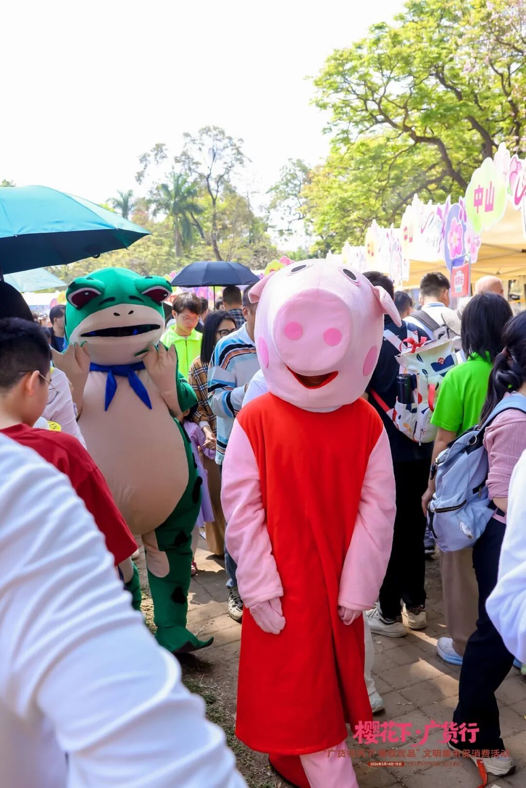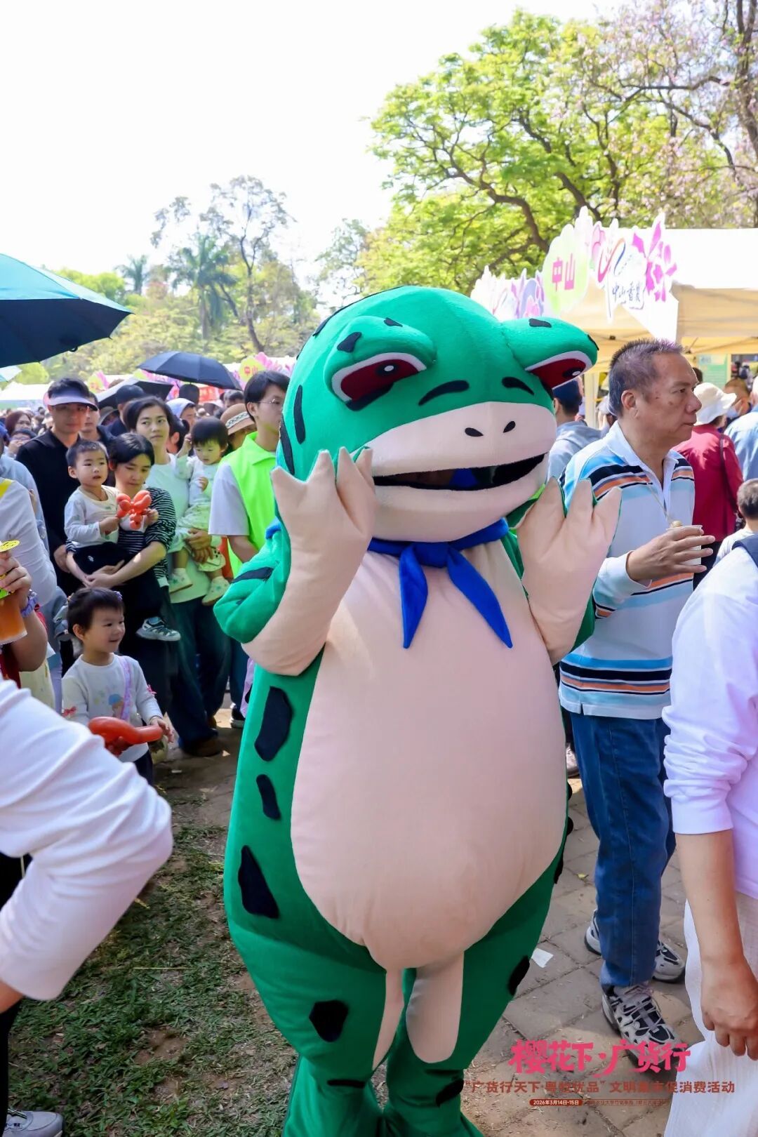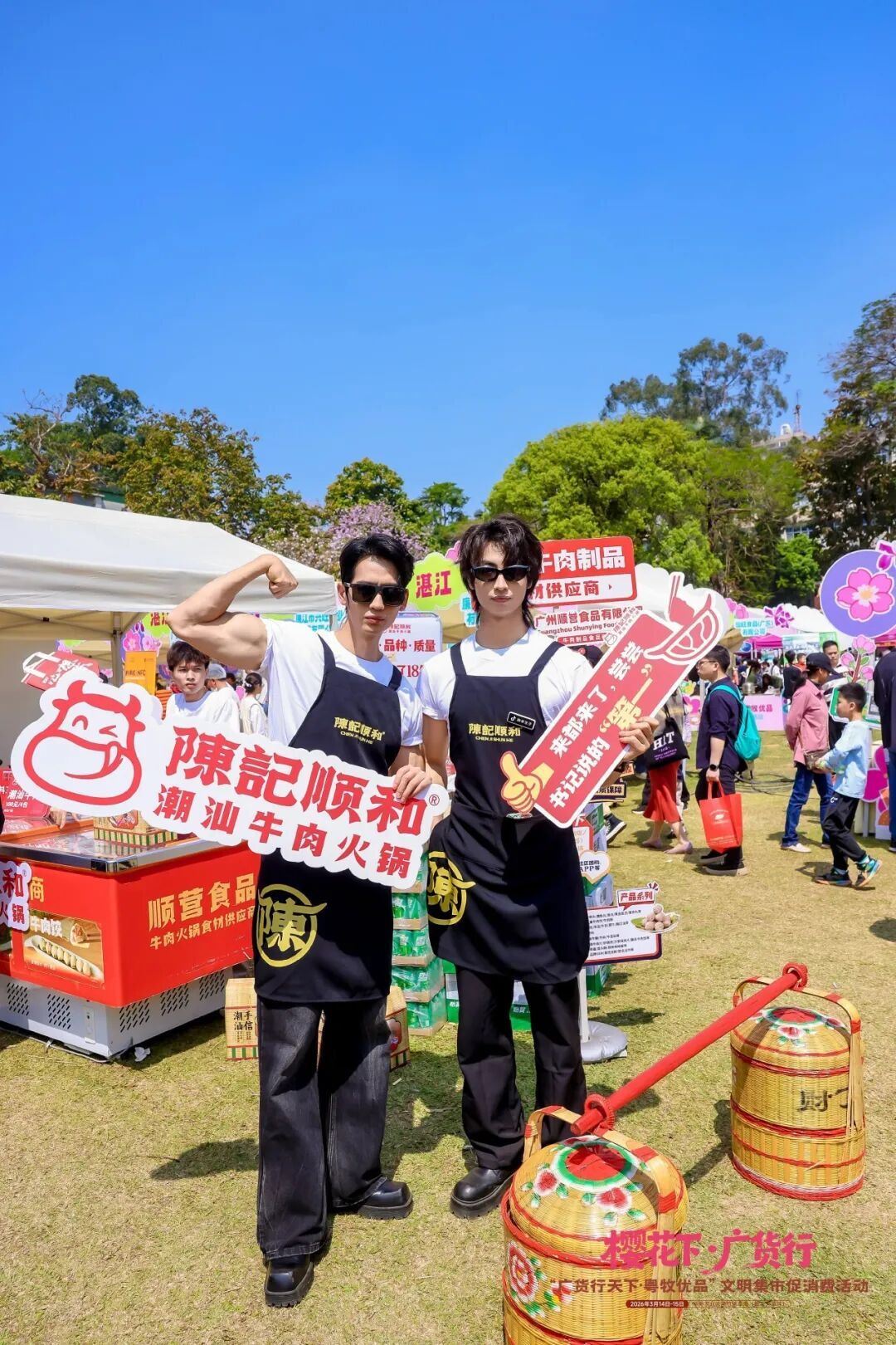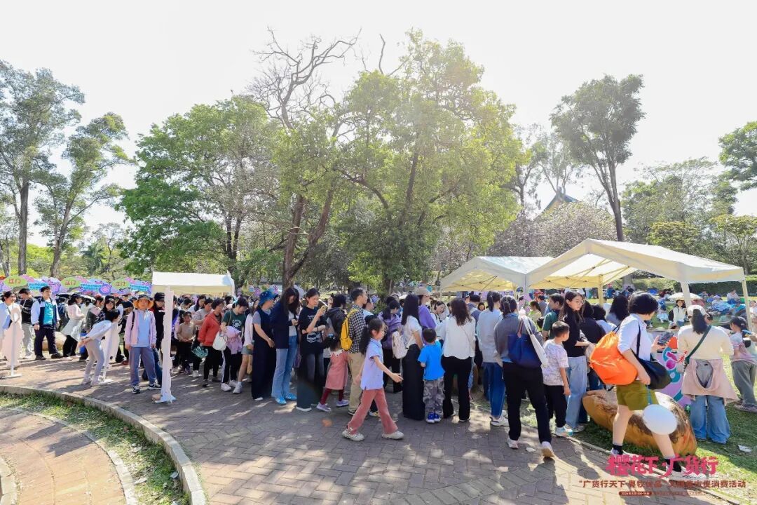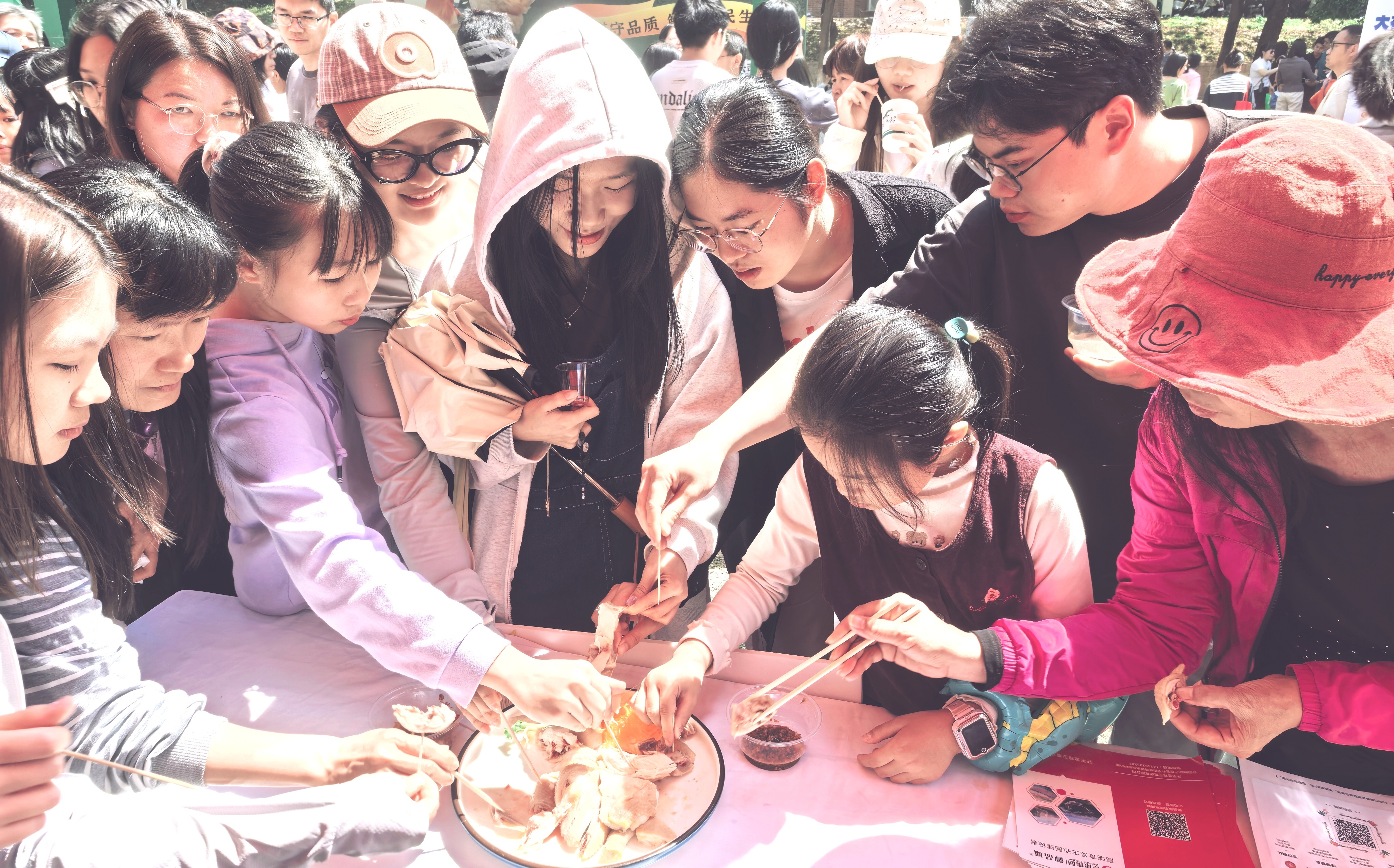 活动现场,德康展位新鲜出锅的胡须鸡肉香味浓郁,吸引市民驻足品尝,成为花下一道风景线。