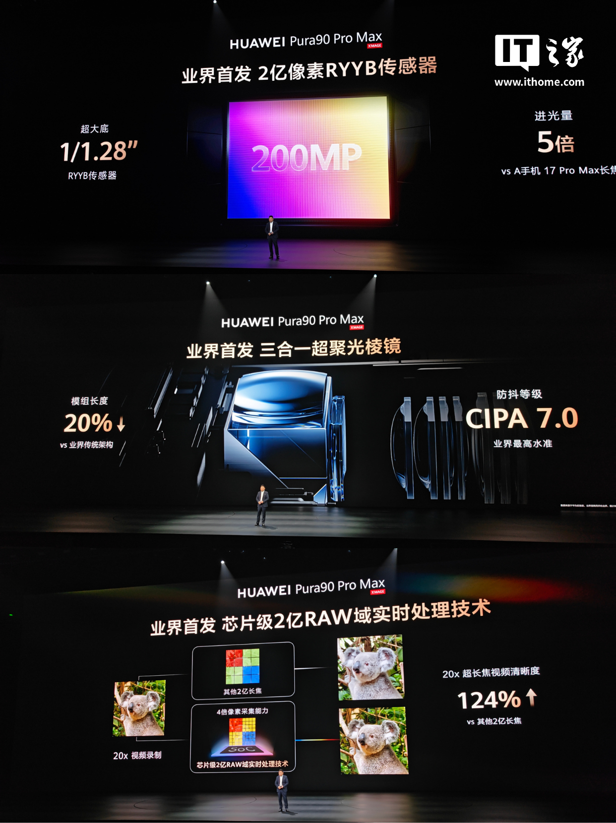 华为 Pura 90 Pro Max 搭载超大底 2 亿长焦,配有业界首发 2 亿像素 RYYB 传感器、三合一超聚光棱镜、2 亿 RAW 域实时处理技术。【图6】