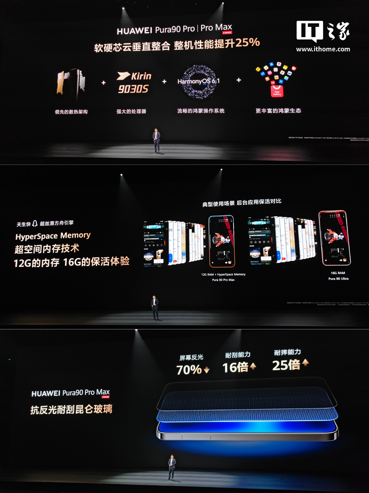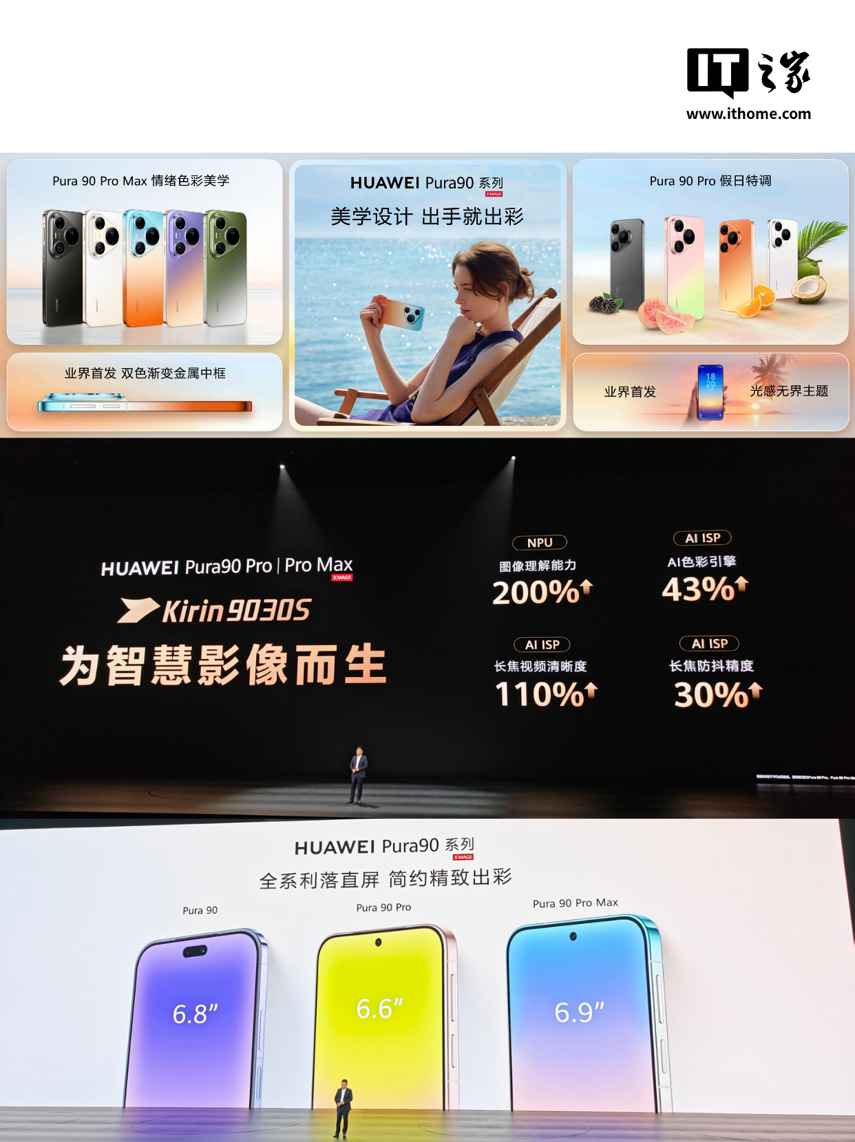 华为常务董事、产品投资评审委员会主任、终端 BG 董事长余承东宣布,Pura 90 Pro / Pro Max 将首发麒麟 9030S 芯片。【图5】